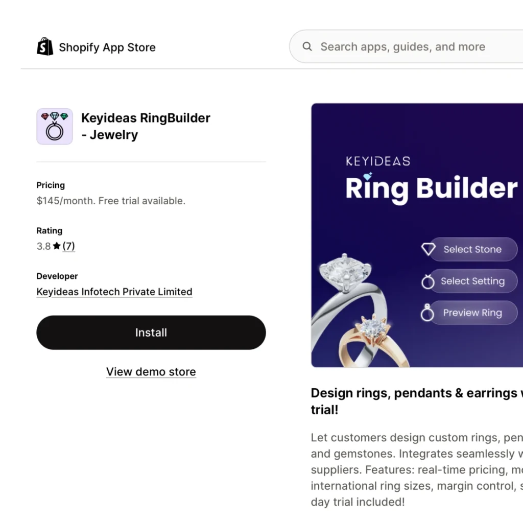 Diamond Ring Builder is an app that lets jewelry stores to offer a “Build Your Own Ring” feature, allowing shoppers to pick any ring style and diamond to create a custom ring.