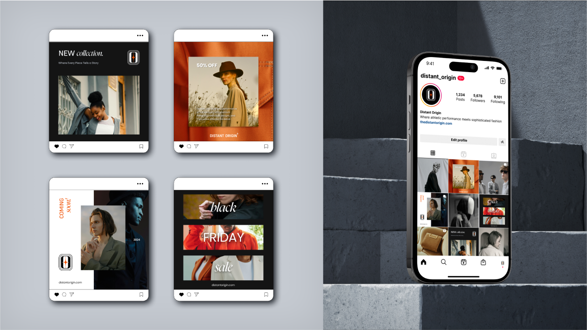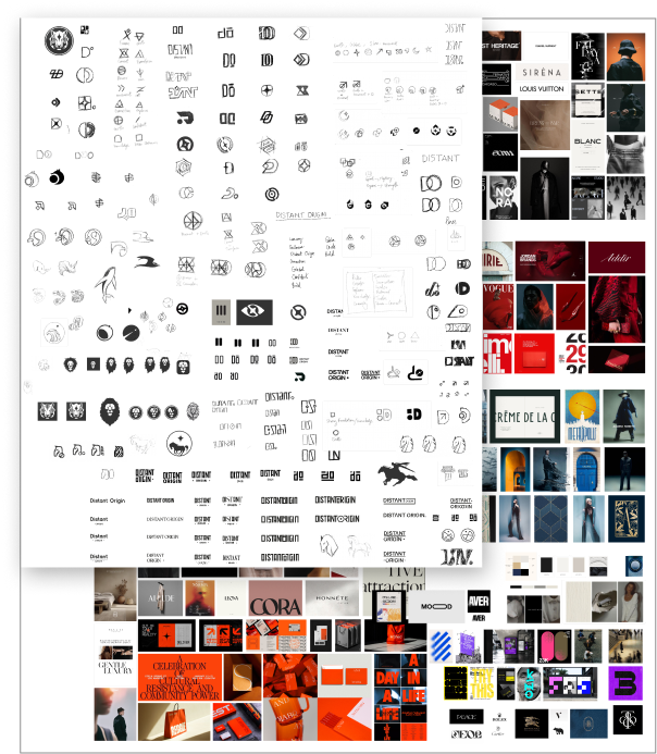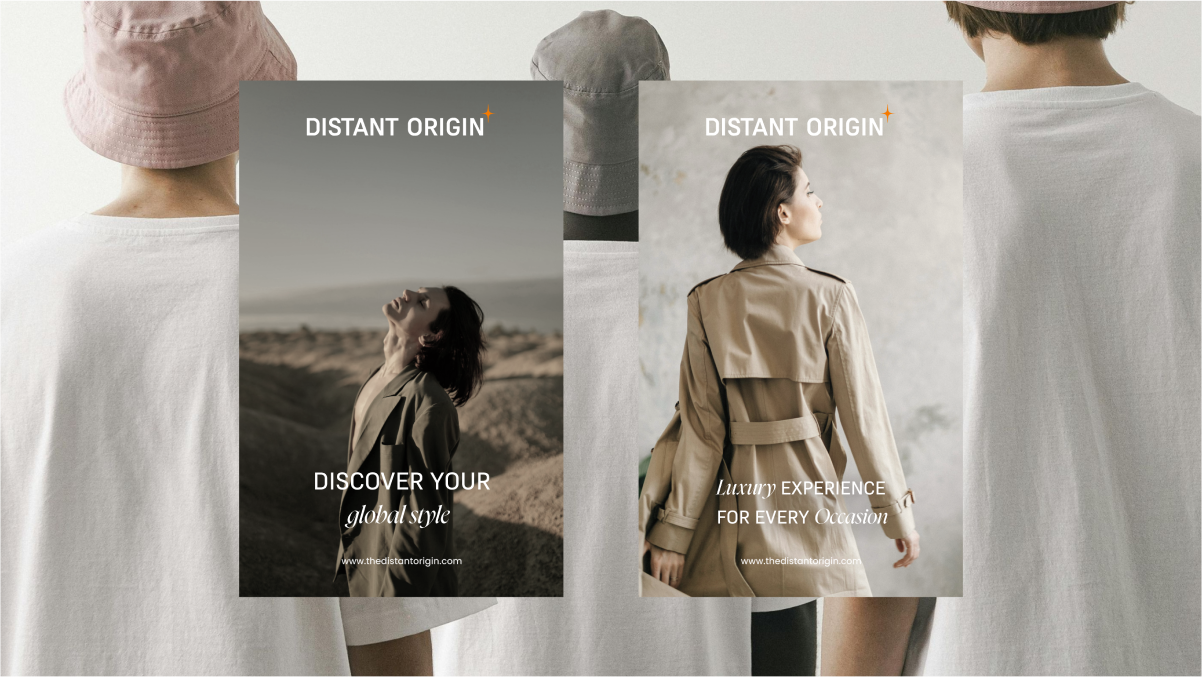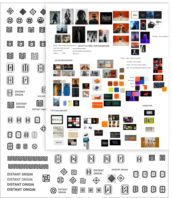 I started by creating mood boards exploring various visual directions. After narrowing down the best concepts, we crafted a unique graphic and visual style that reflects Distant Origin’s global aspirations, ensuring visual direction stands out in the crowded fashion industry.