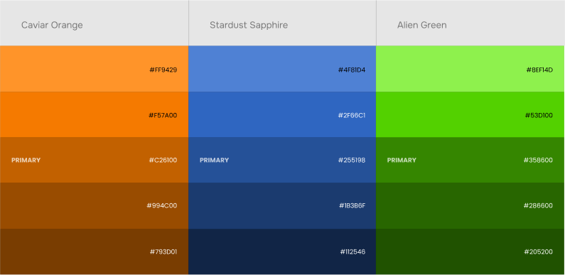 I wanted a palette that was vibrant to give that empowering feel yet luxurious, which was a bit of a challenge. The primary orange delivers a premium, high-end feel while also working perfectly as an accent. When paired with blue, it maintains that luxurious tone. I also included green, thinking ahead for sustainability initiatives.