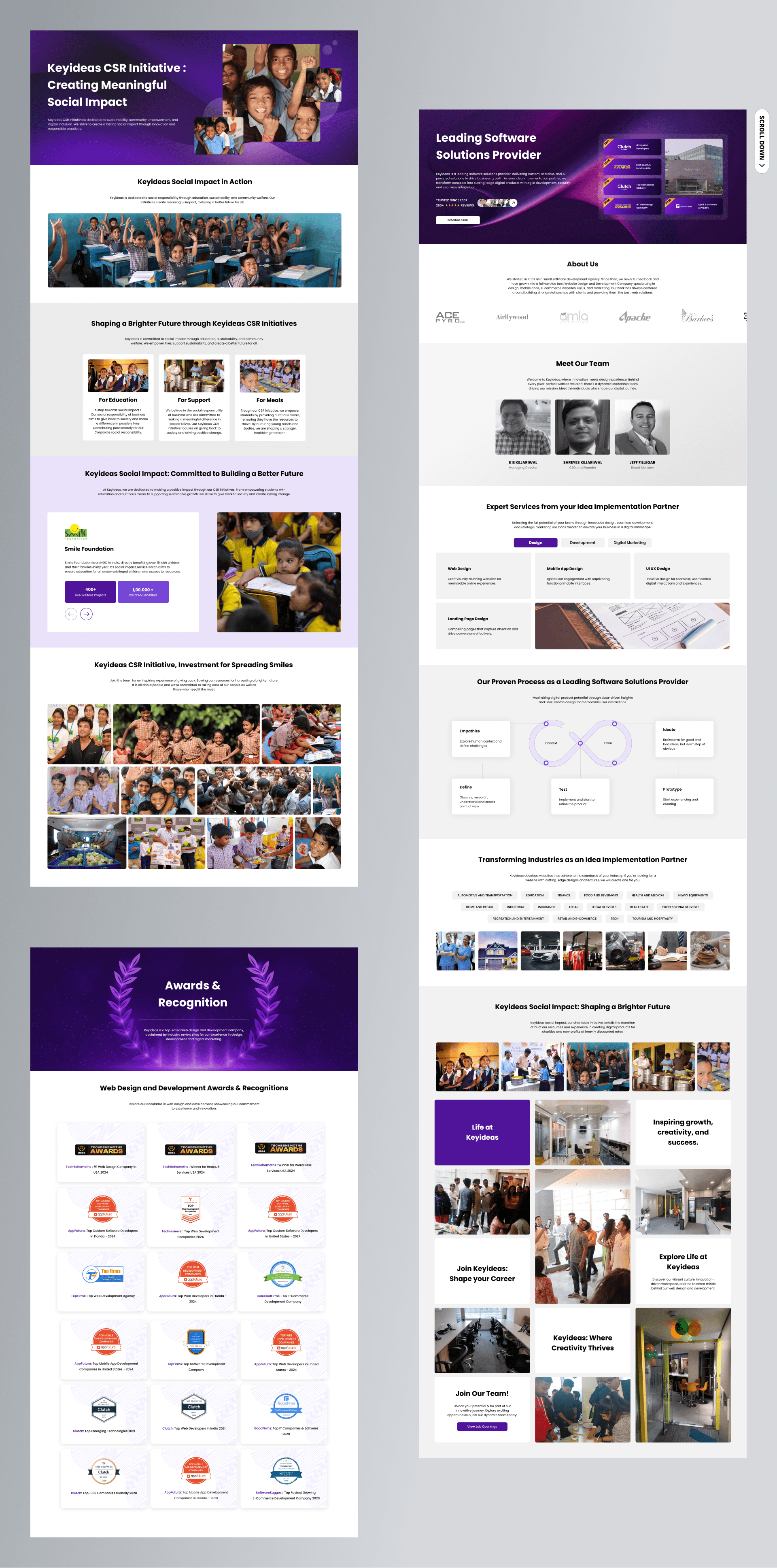 I worked as a full-time UX Designer at Keyideas for nearly three years. My responsibility extended beyond individual page design into long-term UX ownership of the website. I independently designed and redesigned core business pages including the homepage, about page, social impact page, and multiple high-traffic service and industry pages.