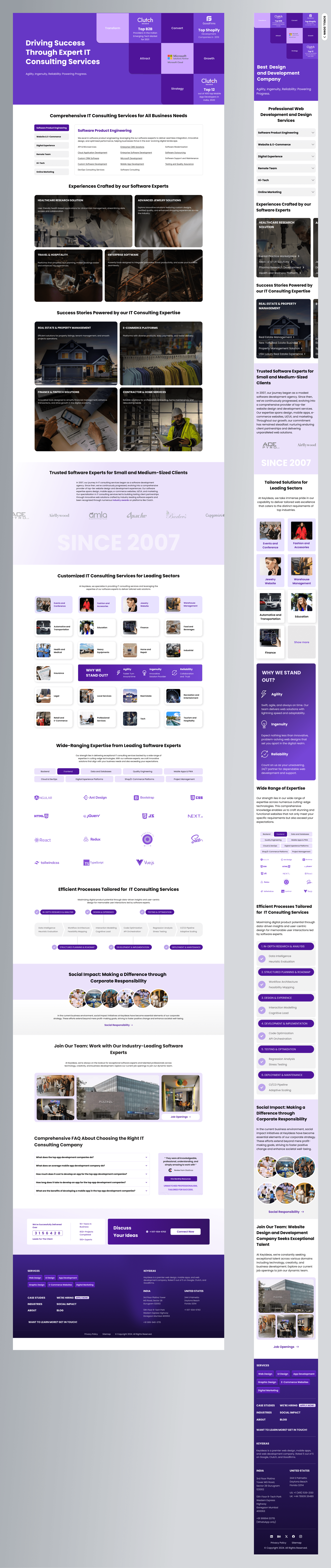 Keyideas Infotech is a long-established IT consulting and software services company founded in 2007. The company delivers end-to-end digital services including software development, UI UX, e-commerce, mobile applications, product engineering, and digital experience design across multiple industries such as healthcare, jewelry, enterprise systems, fintech, real estate, and e-commerce.
