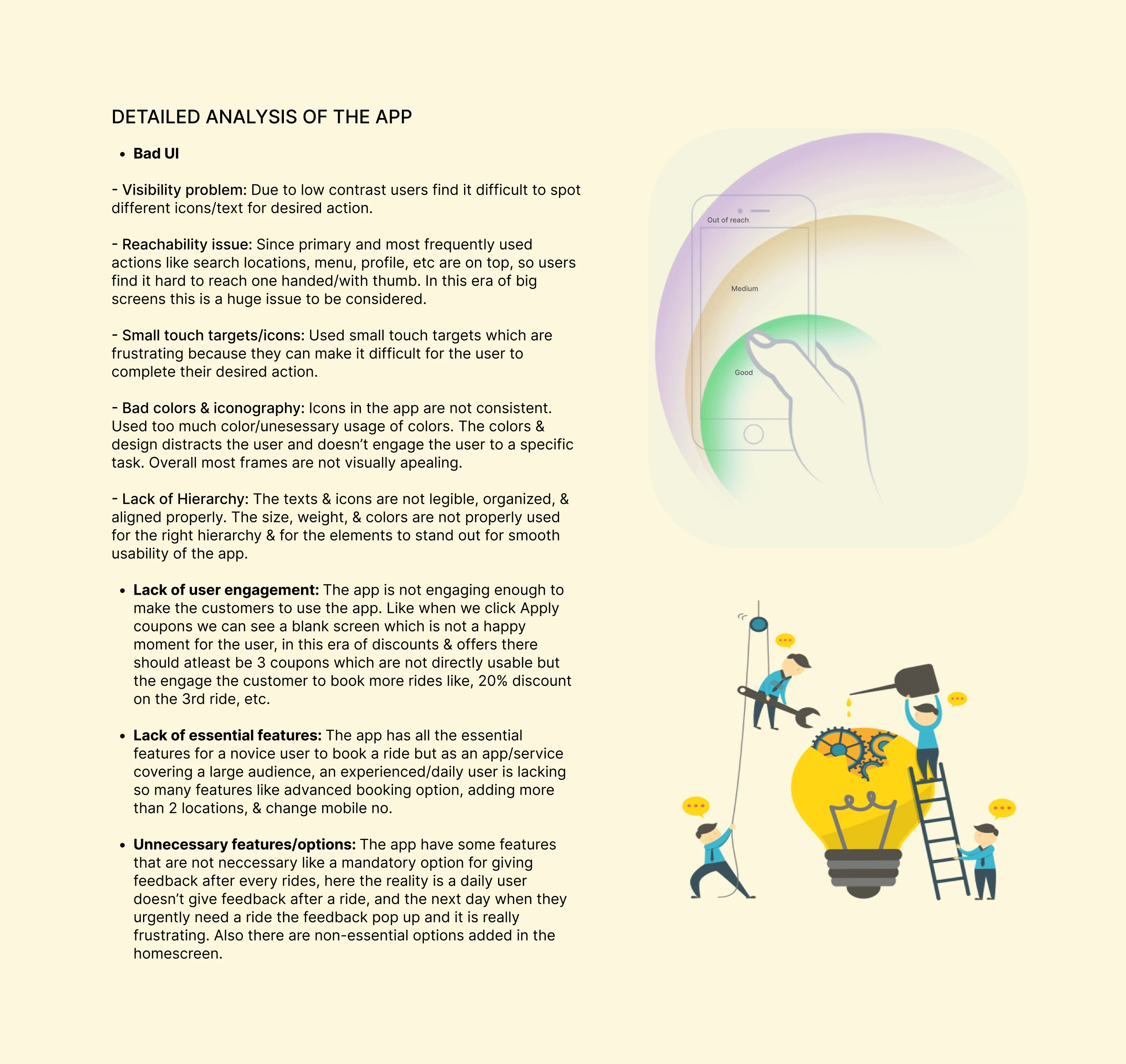 This video walks through the complete end-to-end user journey, showcasing how the redesigned experience flows across onboarding, booking, riding, payment, and feedback. It highlights key interactions, transitions, and decision points to demonstrate how usability and clarity were improved throughout the app.