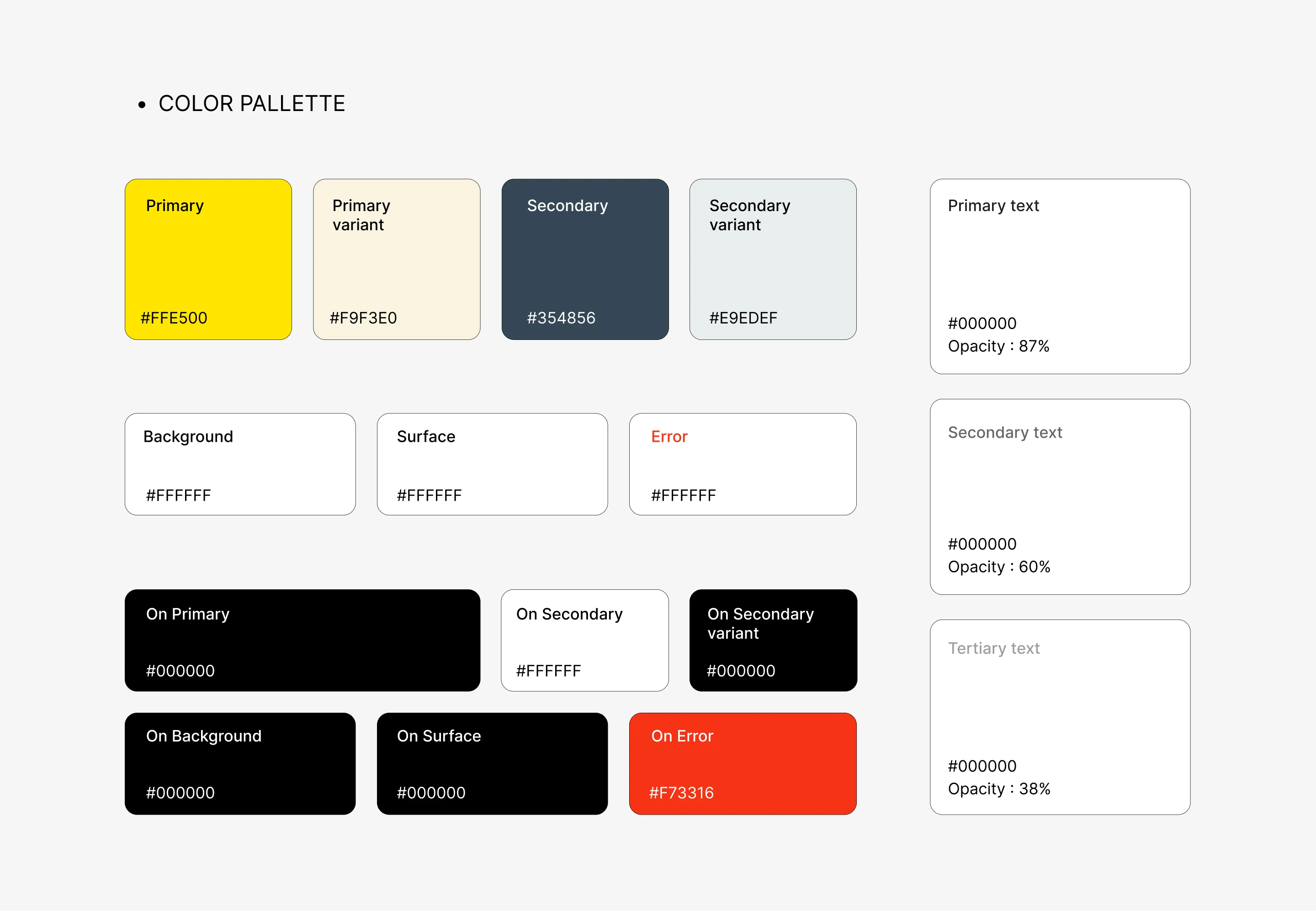 I have made the design language system to save time and to make the design consistent throughout the process. Since this app is more targeted to android users, I made this design system based on the Material design 2 Gudelines
